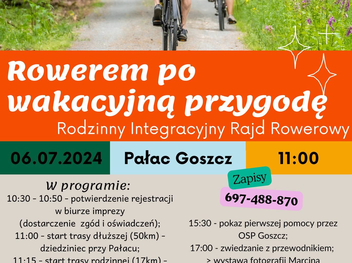 6 lipca 2024 r. odbył się Rodzinny Integracyjny Rajd Rowerowy „Rowerem po wakacyjną przygodę”, który zgromadził miłośników aktywnego wypoczynku w każdym wieku. Uczestnicy wystartowali o godzinie 11:00 z Goszcza, wybierając jedną z dwóch przygotowanych tras dopasowanych do możliwości i doświadczenia rowerzystów.