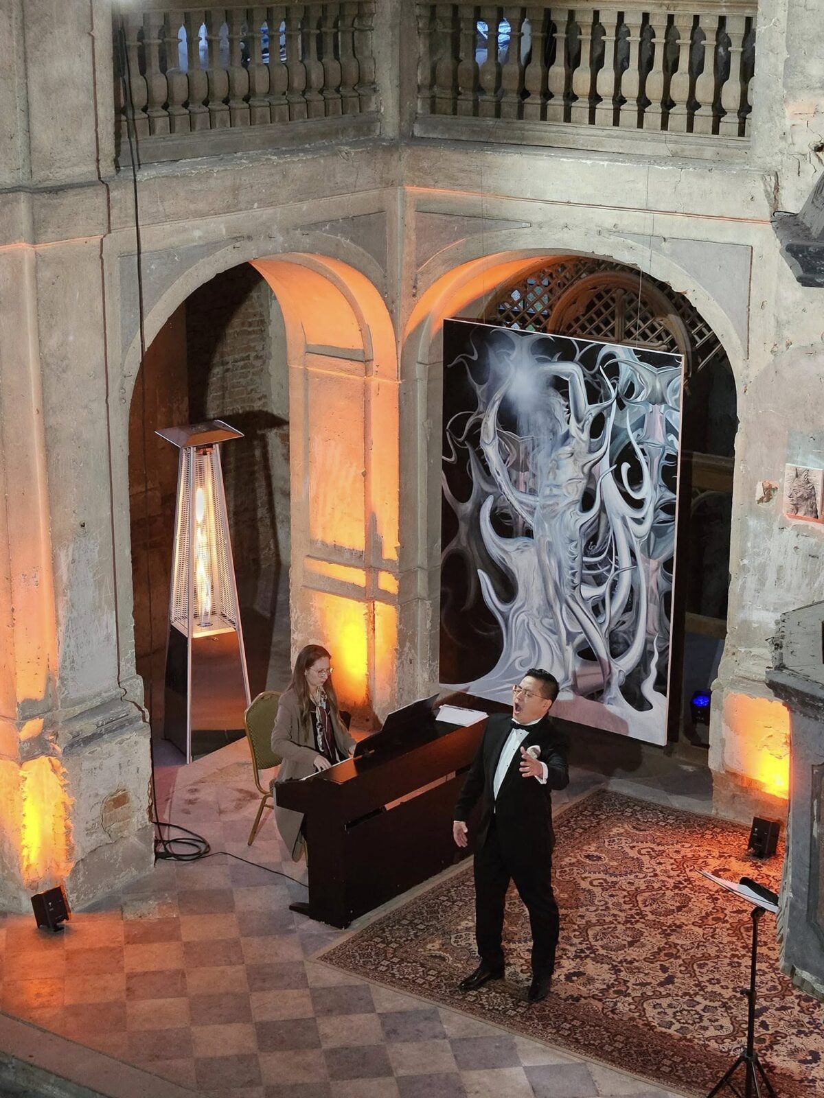 Wydarzenie rozpoczęło się o godzinie 17:00 wernisażem wystawy poświęconej życiu i twórczości Pucciniego. Zwiedzający mieli okazję zapoznać się z materiałami ukazującymi zarówno dorobek kompozytora, jak i kontekst historyczny jego działalności artystycznej. Wnętrza pałacu stworzyły odpowiednią, elegancką oprawę dla prezentowanych treści.