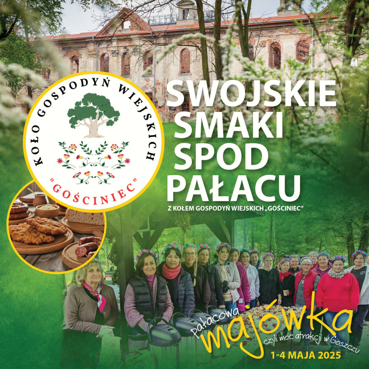 13:00–18:00 – „Swojskie smaki spod Pałacu” z Kołem Gospodyń Wiejskich Gościniec w Goszczu (dziedziniec)