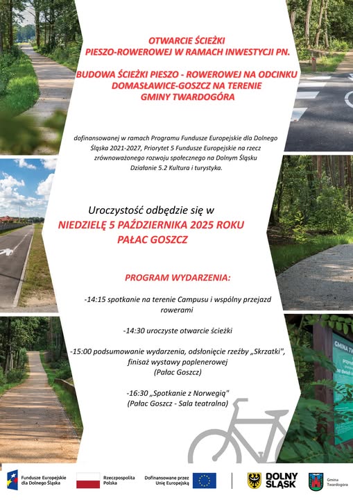 W niedzielę, 5 października 2025 r., na terenie Gminy Twardogóra odbyło się uroczyste otwarcie nowej ścieżki pieszo-rowerowej na odcinku Domasławice-Goszcz.
