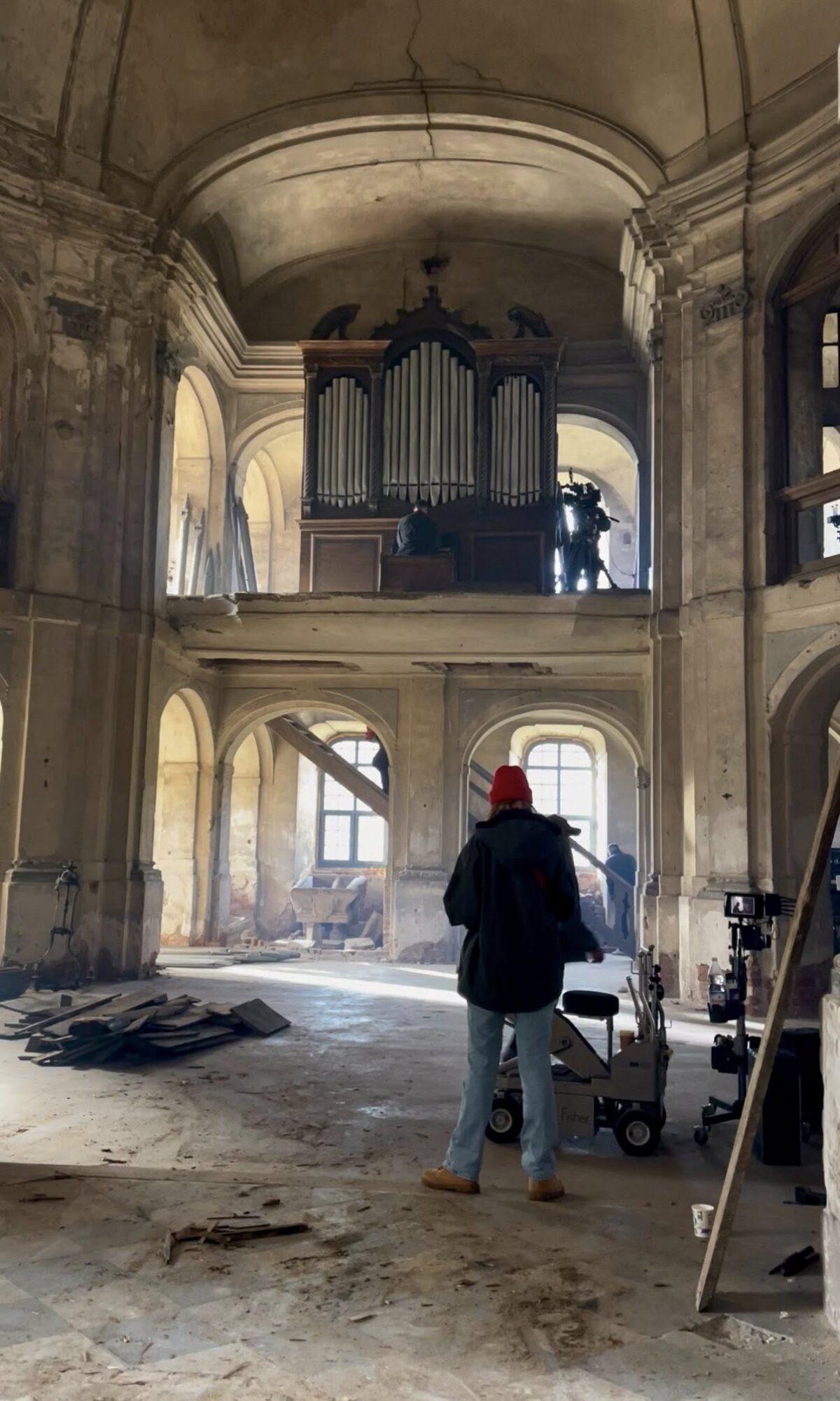 Kościół poewangelicki przy pałacu stał się wyjątkową scenerią filmową, idealnie wpisującą się w atmosferę opowieści. Po zakończeniu zdjęć wykonano pamiątkowe fotografie z reżyserem Pawłem Pawlikowskim oraz producentką Ewą Puszczyńską, znaną z produkcji m.in. Idy i Zimnej wojny.