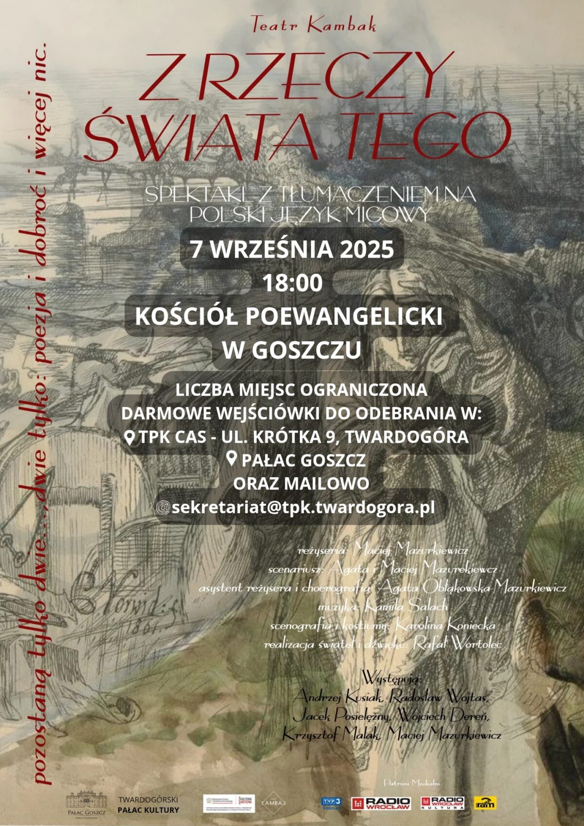 W dniu 7 września 2025 r. w kościele poewangelickim w Goszczu odbył się spektakl „Z Rzeczy Świata Tego” w wykonaniu Teatru Kambak. Spektakl był tłumaczony na Polski Język Migowy, a wstęp był wolny.