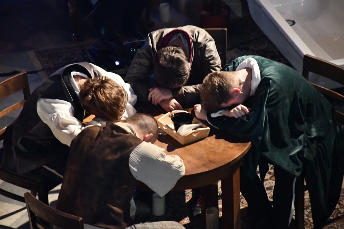 Przedstawienie to emocjonalno-muzyczna podróż oparta na poezji Cypriana Kamila Norwida, ukazująca spotkanie czterech wielkich postaci polskiej kultury – Norwida, Mickiewicza, Słowackiego i Chopina – na pograniczu życia i śmierci. Rozmowy o sztuce, wierze, społeczeństwie i człowieku prowadzone były w formie współczesnej, a scenografia inspirowana grafikami Norwida przeniosła widzów do podziemi Domu św. Kazimierza w Paryżu