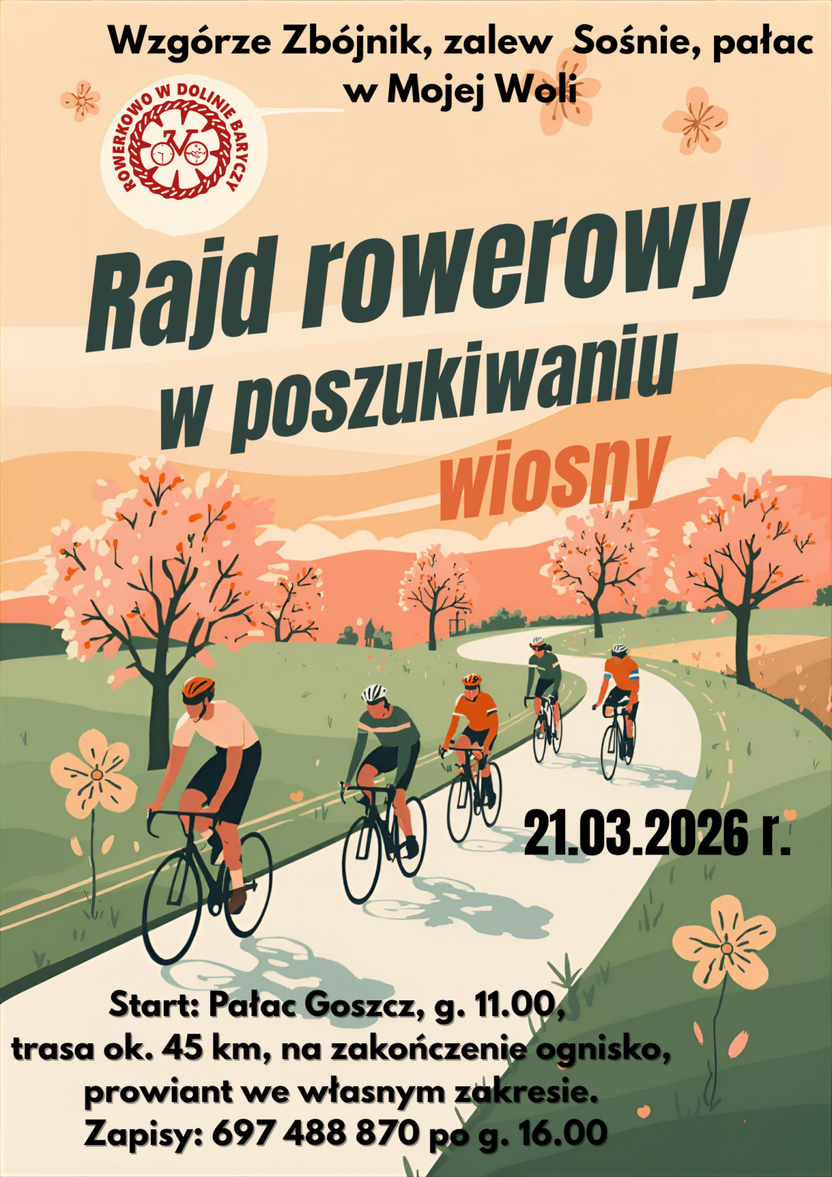 Zapraszamy na Rajd rowerowy w poszukiwaniu wiosny, który odbędzie się 21 marca 2026 r. w malowniczej Dolinie Baryczy. Wydarzenie organizowane jest przez Rowerkowo w Dolinie Baryczy.