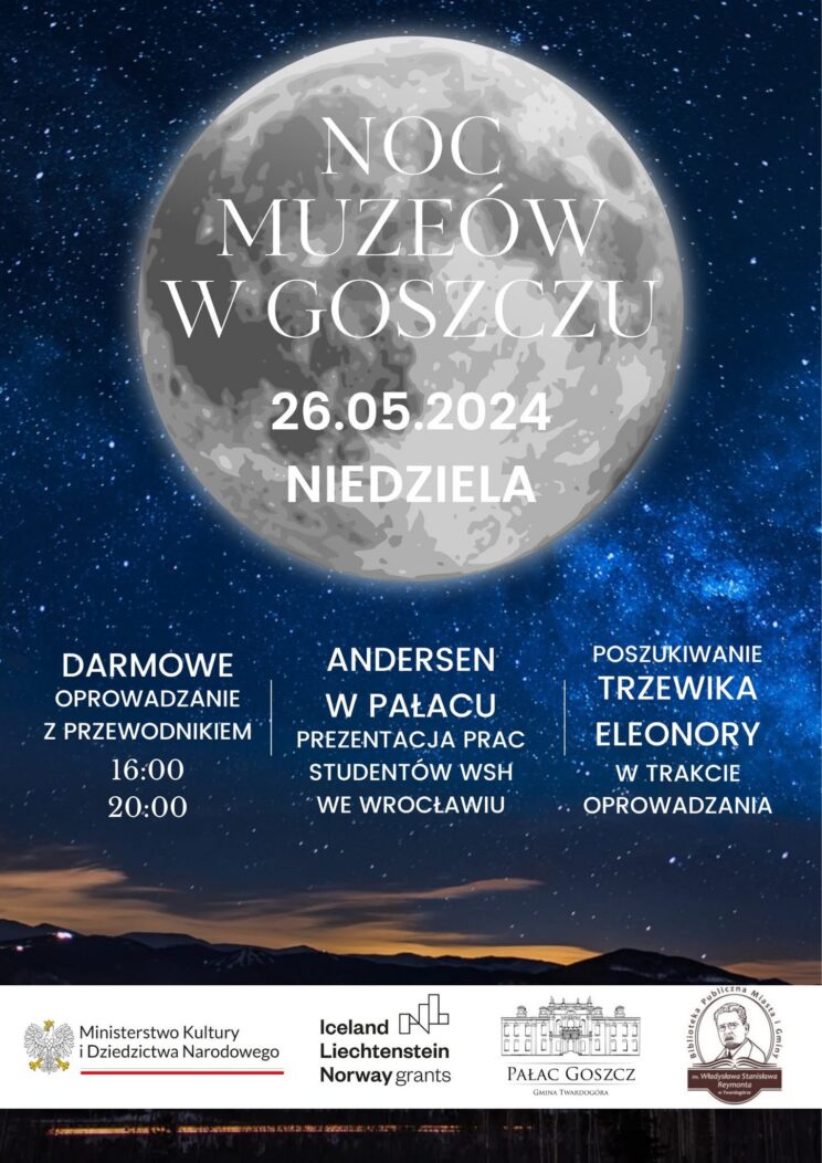 Zapraszamy na Noc Muzeów w Goszczu – już 26 maja 2024 (niedziela) czekana Was wyjątkowe, darmowe oprowadzanie z przewodnikiem o 16:00 i 20:00.W programie m.in. prezentacja prac studentów WSH we Wrocławiu w pałacuoraz interaktywne wydarzenie „Poszukiwanie trzewika Eleonory”,towarzyszące zwiedzaniu.Odkryj historię…