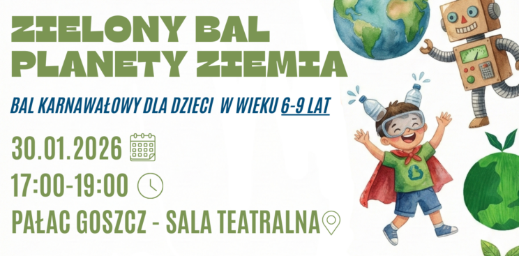 Zapraszamy wszystkie dzieci w wieku 6–9 lat na wyjątkowy ekologiczny bal karnawałowy, który łączy doskonałą zabawę z nauką troski o środowisko naturalne. „Zielony Bal Planety Ziemia” to wydarzenie pełne radości, kreatywności oraz ekologicznych inspiracji. Data: 30 stycznia 2026 r.Godzina: 17:00…