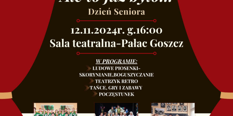 12 listopada 2024 roku w Sali Teatralnej Pałacu Goszcz odbyło się wyjątkowe spotkanie z okazji Dnia Seniora, zorganizowane pod hasłem „Ale to już było…”. Wydarzenie zgromadziło liczne grono mieszkańców, którzy wspólnie świętowali, wspominali i integrowali się przy muzyce, tańcu i…
