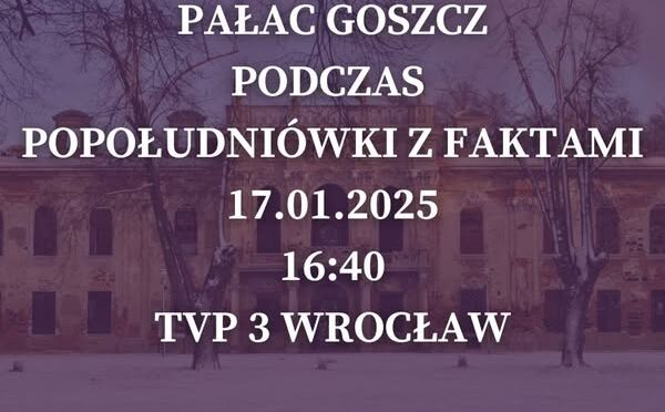 17 stycznia 2025 r. na antenie TVP3 Wrocław wyemitowano materiał o Pałacu Goszcz w programie „Popołudniówka z Faktami”. O godzinie 16:40 widzowie mogli zobaczyć wyjątkową prezentację naszego obiektu – jego historię, trwające prace rewitalizacyjne oraz plany związane z dalszym rozwojem…